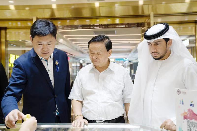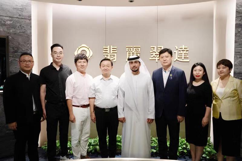 2019年8月28日,迪拜皇室成员、中-阿国际合作中心领导及文创行业协会成员一行来金展珠宝广场参观,并举行中国·阿联酋 迪拜经贸座谈会,中国-阿拉伯国际合作中心与深圳市和梦投资发展有限公司的合作签约仪式。金展珠宝广场总经理王振、金展传媒总裁许成溢予以热情接待。