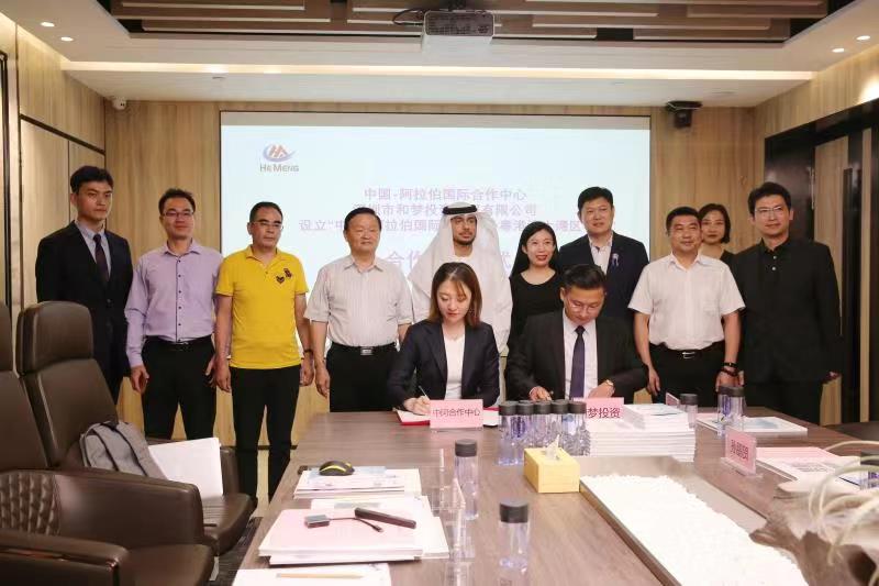 在座谈会中,各位来访领导与嘉宾就中国与迪拜的经贸合作等话题进行了深入的交流。随后,中国-阿拉伯国际合作中心与深圳市和梦投资发展有限公司双方就共同设立“中国-阿拉伯国际合作中心粤港澳大湾区中心”的合作进行签约。