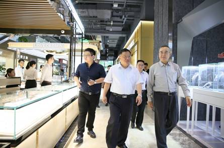 考察团队参观走访了商场塔楼部分以及品牌商家,了解入驻商户的产品品类,由衷肯定了全面升级更新后的金展珠宝广场,对于商场的科学规划、合理布局以及精心运营维护表示称赞。