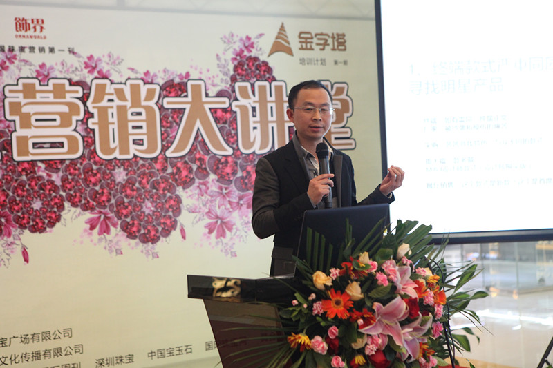 本次"金字塔"培训活动,金展珠宝广场携手《饰界》,特别邀请了资深的珠宝品牌营销顾问陈顺来先生和珠宝展厅营销培训专家陈智先生授课,两位讲师分别就《珠宝行业发展史》和《珠宝展厅销售技巧》做了精彩的讲解。