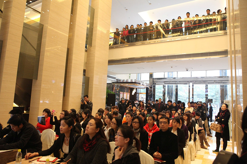 历时四天的"珠宝营销大讲堂",每天两个小时的讲座现场出现了座无虚席、高朋满座的火爆场面,呈现出良好互动学习氛围。甚至一度出现临时加座,后面仍有听众无奈站着听完全课的局面。据了解,金展珠宝广场举办类似的活动,都是对听众免费开放的。整个课堂就设立在金展珠宝广场一楼大堂—— 一个完全开放式的环境当中,这样特别的课堂环境,给予了又要兼顾展厅又想充电学习的学员们许多方便,让他们走出展厅就能聆听务实且高水准的培训课程。但同时也给授课的老师增加了很多的不可控因素,对讲师而言无疑是很大的压力和挑战。
