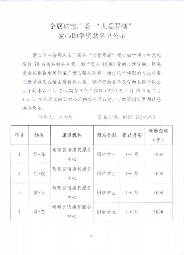 赠人玫瑰,手有余香;携手慈善,情暖校园。近日,金展珠宝广场在深圳市罗湖区慈善会开展的“大爱罗湖”爱心助学项目中,帮扶20名困难特殊儿童,给予每个人10000元的生活资助。