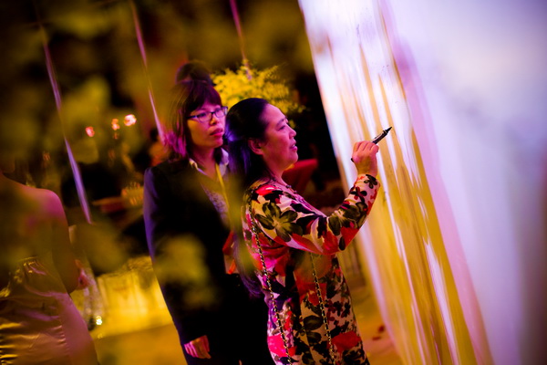 启动仪式令人心潮澎湃,紧接着上演的第一乐章“爱的奏鸣”又将人们引入浪漫甜蜜的氛围中。轻柔悦耳的音乐渐渐响起,仙路“浪漫婚礼”彩宝系列新品秀唯美呈现,身着洁白婚纱的模特们款款而来,桃红色的灯光映衬出“新娘们”幸福的笑靥,梦幻云雾升腾而出,晶莹泡泡空中轻舞,现场如同一座神圣的婚礼殿堂,令到场来宾深深沉醉其间。