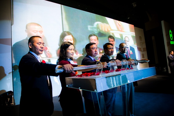 正当人们对这些绚烂彩宝意犹未尽之时,仙路旗下终端零售品牌COLORBAY格莱贝的品牌启动仪式又给了人们新的惊喜。仙路珠宝首饰有限公司总经理梁慧霞女士、仙路品牌顾问卡尔老师、COLORBAY格莱贝品牌营运中心总经理刘雪平女士以及COLORBAY格莱贝加盟商代表吴晓燕女士应邀上台,共同打开一枚鲜美的花苞,霎时间数十件缤纷彩宝如色彩精灵般从花苞中跃然而起,飞于背景屏中组成了一副炫彩斑斓的“COLORBAY”字样,标志着COLORBAY格莱贝品牌的正式启动,同时也预示着COLORBAY格莱贝将在中国市场开出更多更绚烂的彩宝之花。