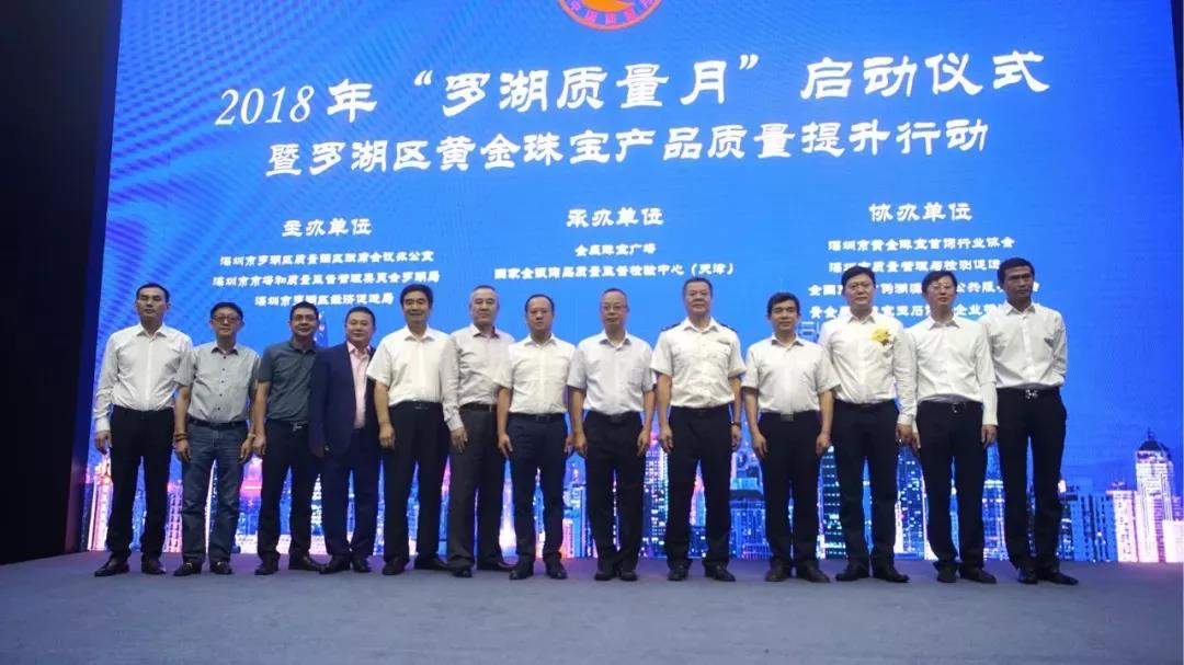2018年9月10日下午,由深圳市罗湖区质量强区联席会议办公室、深圳市市场和质量监督管理委员会罗湖局、深圳市罗湖区经济促进局联合主办的《2018年“罗湖质量月”启动仪式暨罗湖区黄金珠宝产品质量提升行动 》主题活动在金展珠宝广场隆重举行。